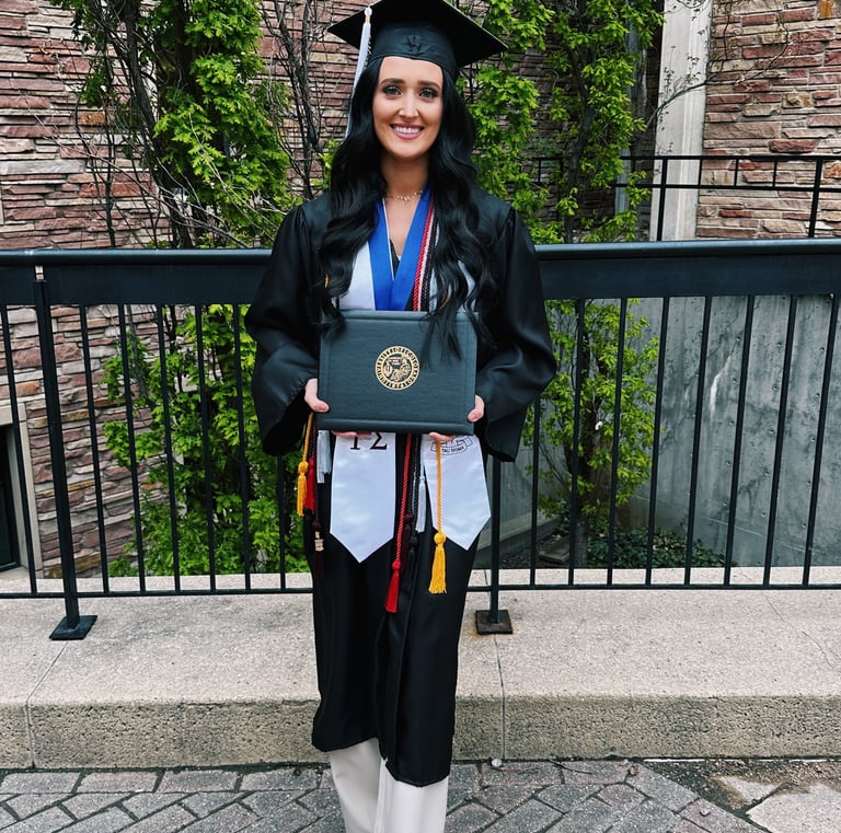 I later transferred to the University of Colorado Boulder, graduating in 2024 with a Bachelor of Arts in English Literature with distinction. During my time at CU Boulder, I served as President of Tau Sigma National Honor Society for Transfer Students, balanced two part-time jobs, and was inducted into the Phi Beta Kappa Honor Society. These experiences strengthened my commitment to academic excellence, leadership, and perseverance.